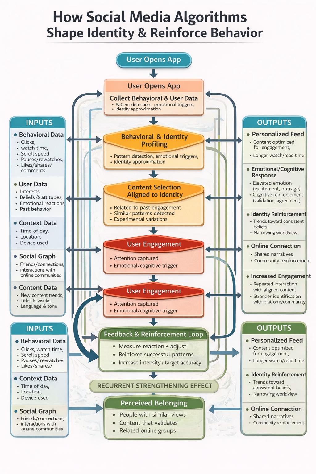 The system doesn’t stop at content. It connects you to people who think like you, content that validates you, and communities that reflect your patterns.